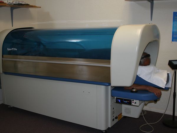 The aqua Massage apparatus is also a unique machine at our facility. This machine utilizes warm water with 36 pulsating mini-jets which go up and down the individual’s body without getting wet. The person does not have to undress and a protective barrier is placed between the individual’s body and the water while they lay face down on a cushioned mat. This apparatus is also available for for the public use, a price list is available by calling our Silver City office at (575) 388-0430.