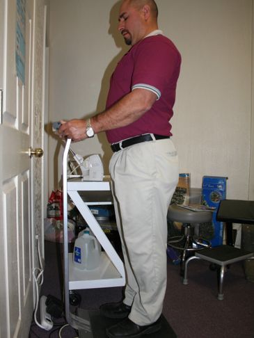 This Apparatus is also unique to our facility. This machine utilizes vibration plates which can be controlled at different levels and amplitudes of vibration. The individual can perform exercises while standing on it, sitting, or for massage of the spine. This purpose of this machine is to enhance circulation, flexibility, increase muscle strength, and increase bone density. This machine will be integrated with athletic performance exercises, and any other problem which may be appropriate such as spine pathology, improving flexibility and strength. This Service is only available at the Silver Office.