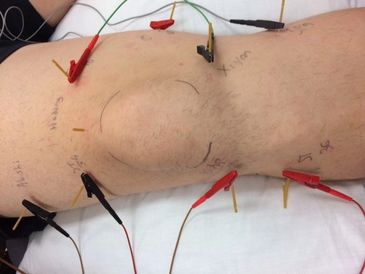 Dry needling is a form of therapy in which fine needles are inserted into your skin to target specific painful areas such as muscles, tendons, ligaments, and/or near nerves in order to stimulate a healing response. At times Dry needling will be integrated with electrical stimulation to maximize the benefit (see illustration I, below for a knee set-up). Dry needling is not acupuncture or Oriental Medicine; that is, it does not have the purpose of altering the flow of energy (“Qi’) along traditional Chinese energy meridians for the treatment of diseases.