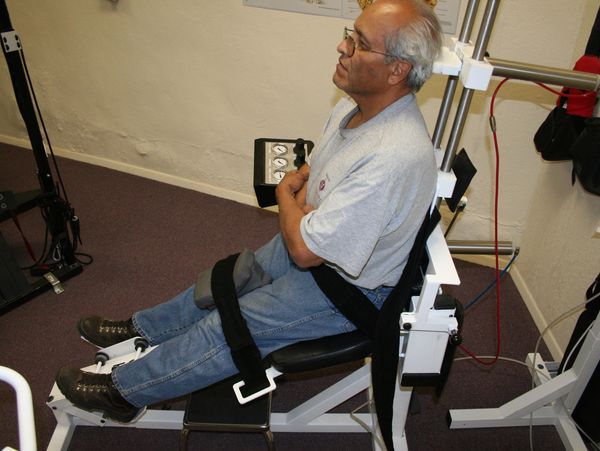 The posture gage apparatus is also a unique apparatus to our facilities. It is specifically designed to measure the individual’s overall standing posture by tracing the individual’s spine curves in a standing position. The data points are then entered in a computer program which analyze points and compares the results to the normal curves. Via the results from this system, the Pneu-chair system is set up according to the spine segments that require the most attention.